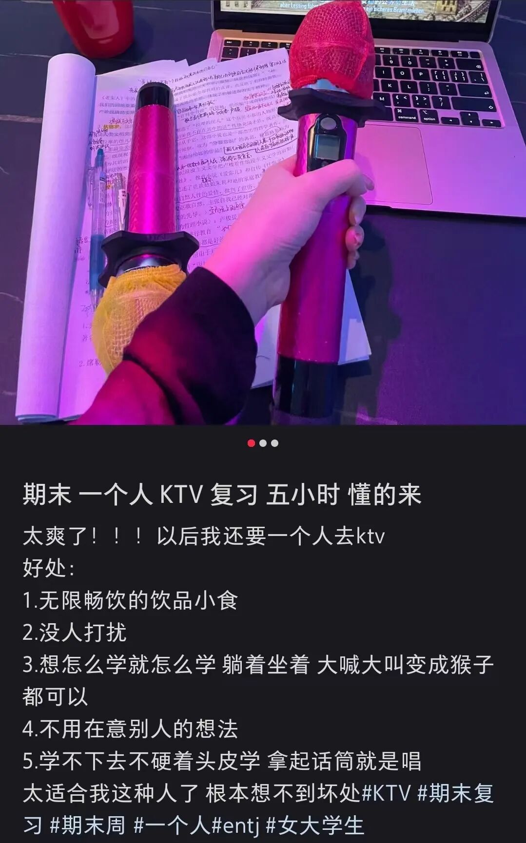 对学外语、练面试的人来说,KTV更是块宝地。关上门自成一方天地,隔音好不怕丢脸,正好放开了练。话筒能把你的声音放大,每个发音漏洞都听得清清楚楚,自带“实战演练”buff。