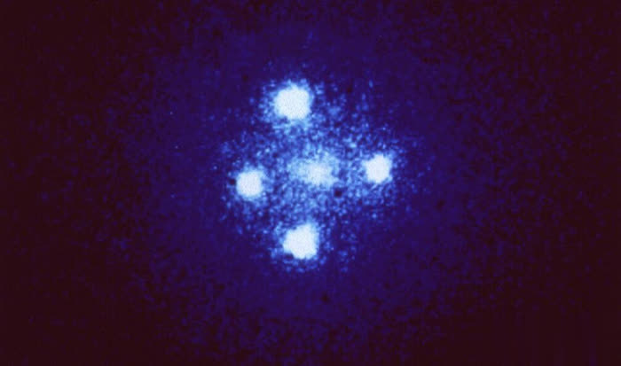 这种奇异的现象应该如何解释呢?由于这五个星系在整体上排列成一个十字形,所以科学家首先想到的就是,这应该是“爱因斯坦十字”。