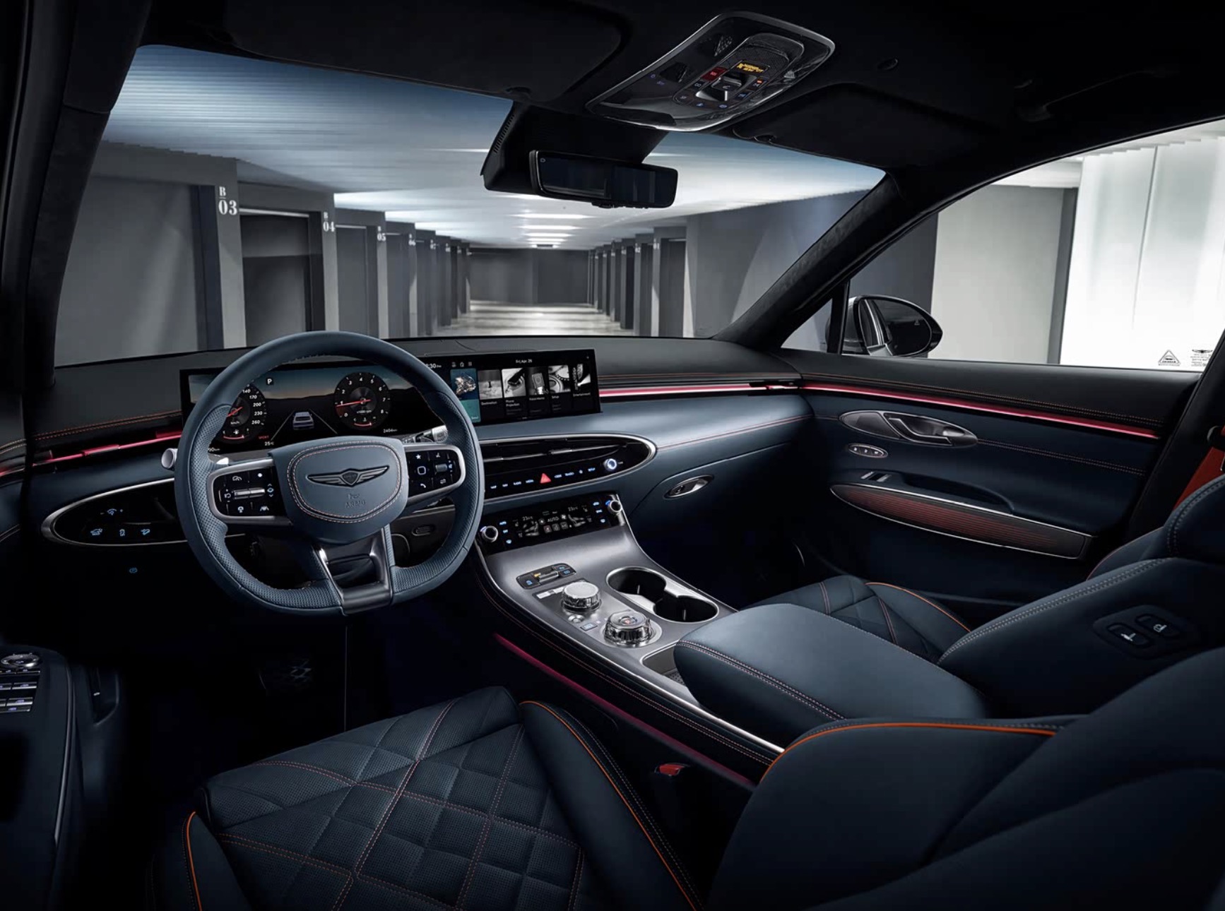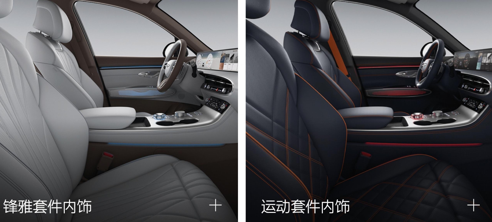 内饰的豪华氛围营造堪称同级标杆,采用大面积真皮材质包裹,搭配木纹或金属饰条,细节处的缝线工艺细腻考究。车内也将提供运动和锋雅两种套件风格,运动套件版本配备专属运动座椅,采用Alcantara材质拼接,侧向支撑性优异,能牢牢固定驾乘者;锋雅套件则以更柔软的真皮座椅为主,强调乘坐舒适性。中控台配备14.5英寸悬浮式中控屏,搭载最新的捷尼赛思智能互联系统,支持语音交互、在线导航、车联网及OTA在线升级功能,操作流畅便捷。全液晶仪表盘与HUD抬头显示系统形成三屏联动,让驾驶信息一目了然。