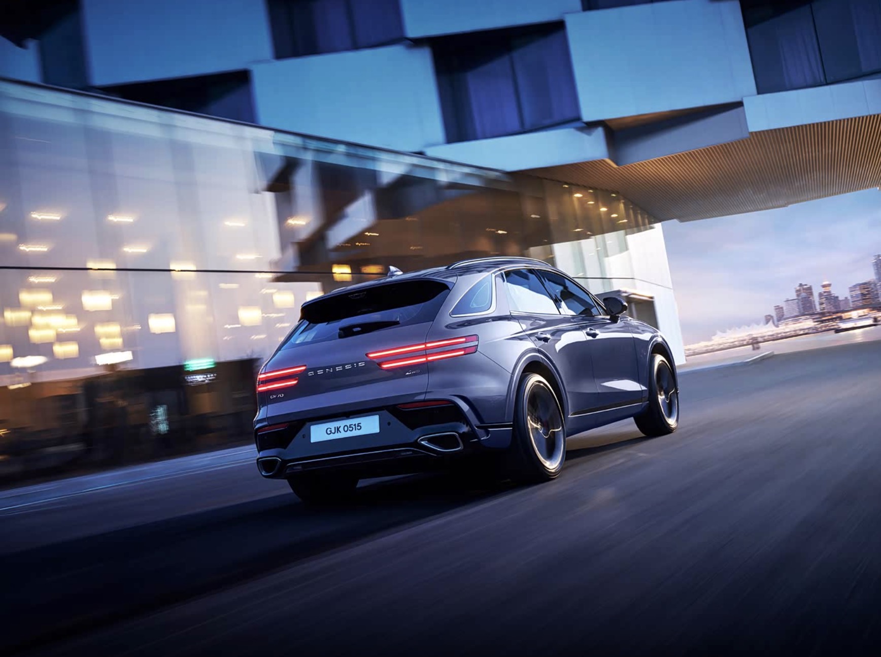 外观设计上,2026款捷尼赛思GV70将“优雅与力量”完美融合。前脸部分,标志性的大尺寸钻石切割进气格栅搭配两侧“双翼式”LED大灯组,灯腔内的竖状光源点亮后极具辨识度,瞬间彰显豪华身份。运动套件版本配备专属熏黑前唇、红色刹车卡钳及20英寸运动轮毂,车身侧面的溜背线条更显凌厉;锋雅套件则以镀铬饰条点缀车身,搭配多辐式豪华轮毂,营造出沉稳大气的视觉效果。尾部采用贯穿式LED尾灯,搭配双边共两出的排气布局,运动感与豪华感兼具。车身尺寸方面,新车长宽高分别为4715/1910/1645毫米,轴距为2875毫米,宽大的轴距为车内空间提供了坚实保障。