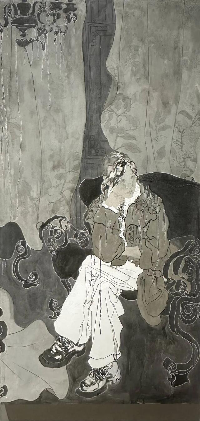 你在思考着什么-2号(国画)张博闻,选自上海美术馆(中华艺术宫)第十三届上海美术大展