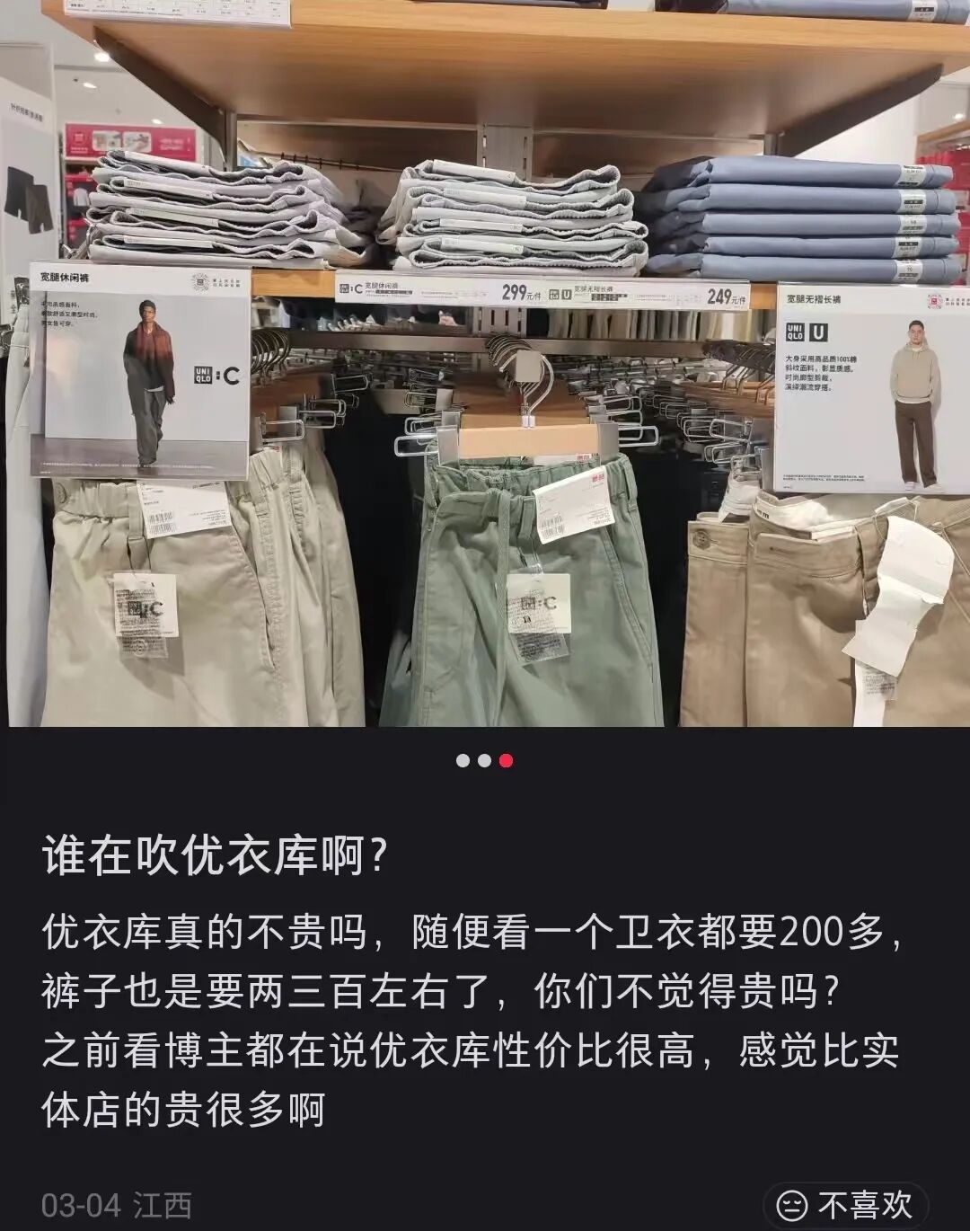 再加上质量一般、设计款式老化、联名多,圈钱感重等质疑逐渐发酵,优衣库的口碑大不如前。