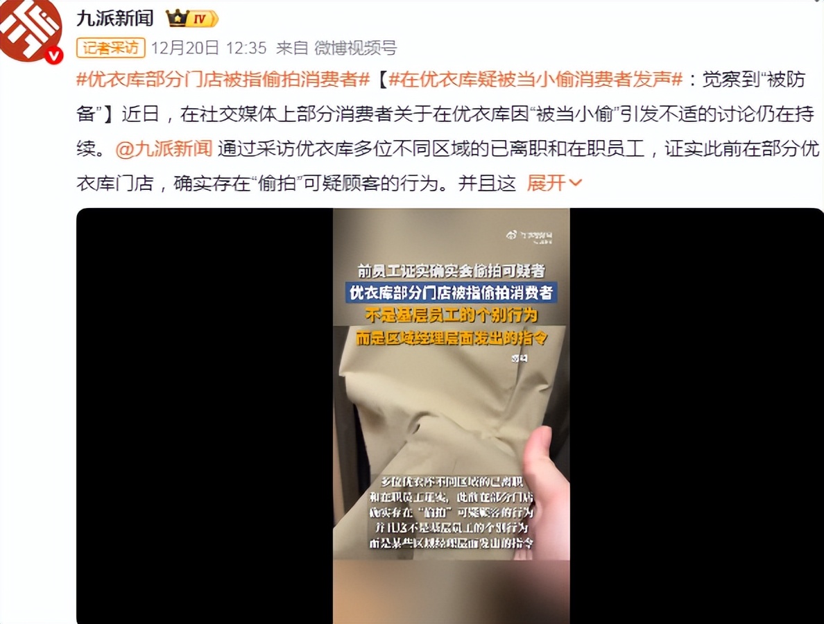 有记者通过采访优衣库多位不同区域的已离职和在职员工,证实此前在部分优衣库门店,确实存在“偷拍”可疑顾客的行为。