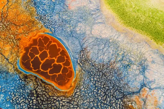 在扩张过程中,盐壳之间相互碰撞挤压,最终在接触面断裂隆起,形成了类似血管网的结构。这些脉络随着季节和水文条件的变化而不断改变,如同真正的血管一样具有动态的生命力。