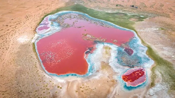 乌兰湖的红色主要归功于湖水中丰富的嗜盐微生物,如杜氏盐藻和嗜盐菌。这些微生物在高温高盐度环境下大量繁殖,并释放色素,使湖水呈现红色。