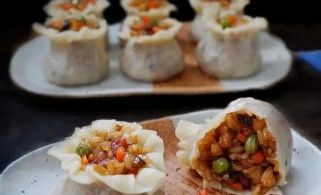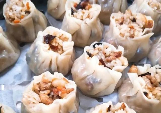 做法:1、糯米淘洗干净,加入没过糯米一大拇指关节的水,倒入电饭锅,开启煮饭模式。2、干香菇加适量温水泡开,挤干香菇的水分,切丁,黑木耳也是泡开切成丁。3、胡萝卜洗净去皮切成丁,小葱切末,把葱白葱绿分开。4、肥瘦适中的五花肉,剁成肉末,锅内少许油烧热,倒入肉末翻炒至发白,煸炒出油。5、将肉末铲到一边,倒入葱白用锅底的油爆香,再和肉末一起翻炒均匀,把炒好的铲到一边,下香菇和木耳,同样用锅底的油翻炒均匀。倒入胡萝卜丁,翻炒均匀。6、调入生抽、老抽、料酒、白砂糖和盐,翻炒均匀。7、将炒好的食材拌入糯米饭,尝尝味道,淡了可以再加盐,随个人口味调整,再拌入葱绿。8、拿起一张饺子皮,放入一勺糯米饭,用筷子在周围划一圈水,捏出6个角,用左手虎口捏住收腰,记得要收紧一些,不然容易散,一颗肥嘟嘟的糯米烧麦就做好了。9、蒸锅烧开水,上汽之后蒸8分钟,焖2分钟就可以吃到美味的烧麦了,真的很香。