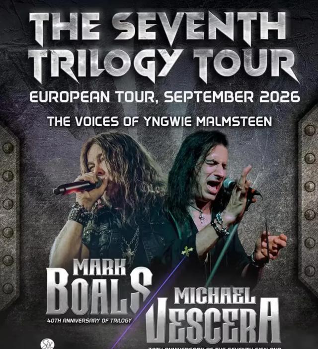 Mark Boals 和 Michael Vescera 宣布将于 2026 年 9 月开启名为“Seventh Trilogy Tour”的欧洲巡演,而他们在社交媒体上发布的广告语为“Yngwie Malmsteen 之声”。