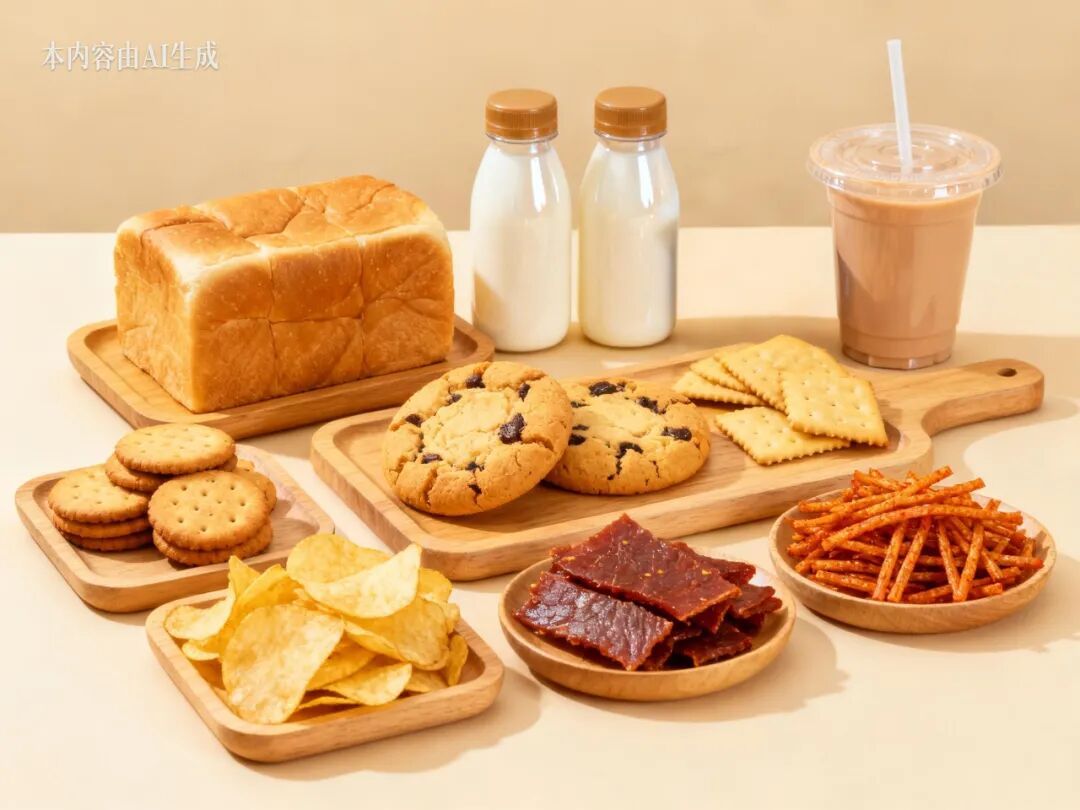 加工食品:面包、饼干、薯片、肉脯、辣条、坚果