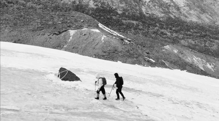 ◀12月12日16时左右,业务科研人员手持登山杖,走在海拔约4300米的冰面上。图/何玉凤