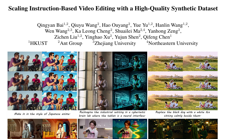 这是一个关于人工智能如何学会"听话"的故事。想象你正在看一部视频,突然想到:"要是能把这个场景变成日本动漫风格就好了"或者"能不能把这只黑狗换成白狐狸?"在过去,这样的想法只能停留在脑子里,因为实现它需要专业的视频编辑师花费数小时的工作。但现在,一个由蚂蚁集团、香港科技大学、浙江大学和东北大学的研究团队开发的新系统正在改变这一切。