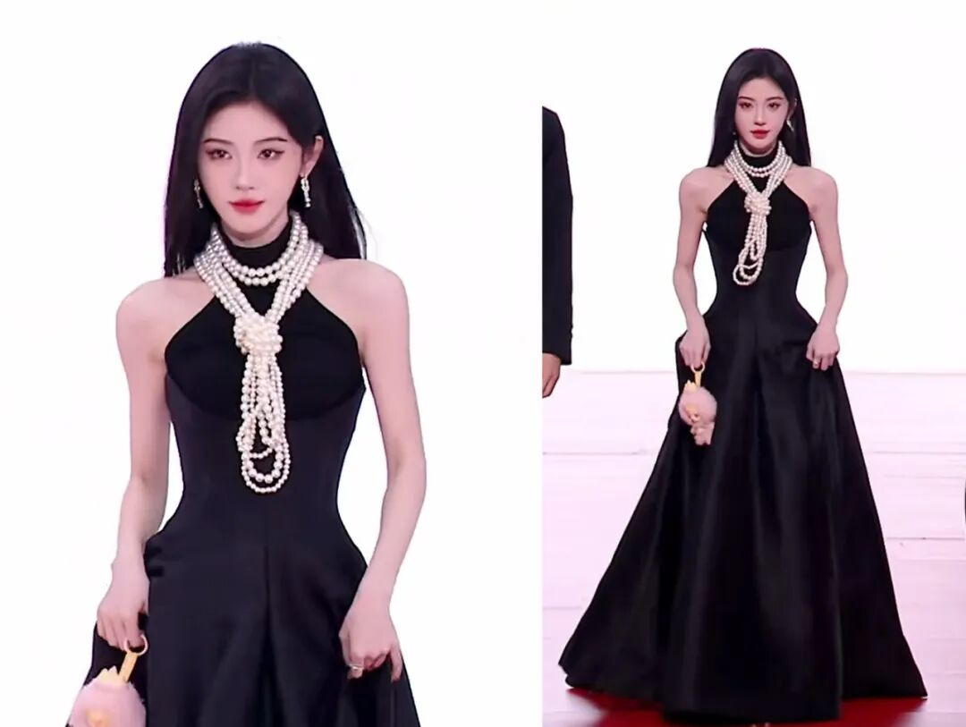 王玉雯最近几次的红毯造型都让人惊艳,这次她穿了一条黑色挂脖长裙,搭配利落的盘发和瞩目的耳饰,完全就是都市剧里刚在晚宴亮相就能吸引众人目光的千金小姐。