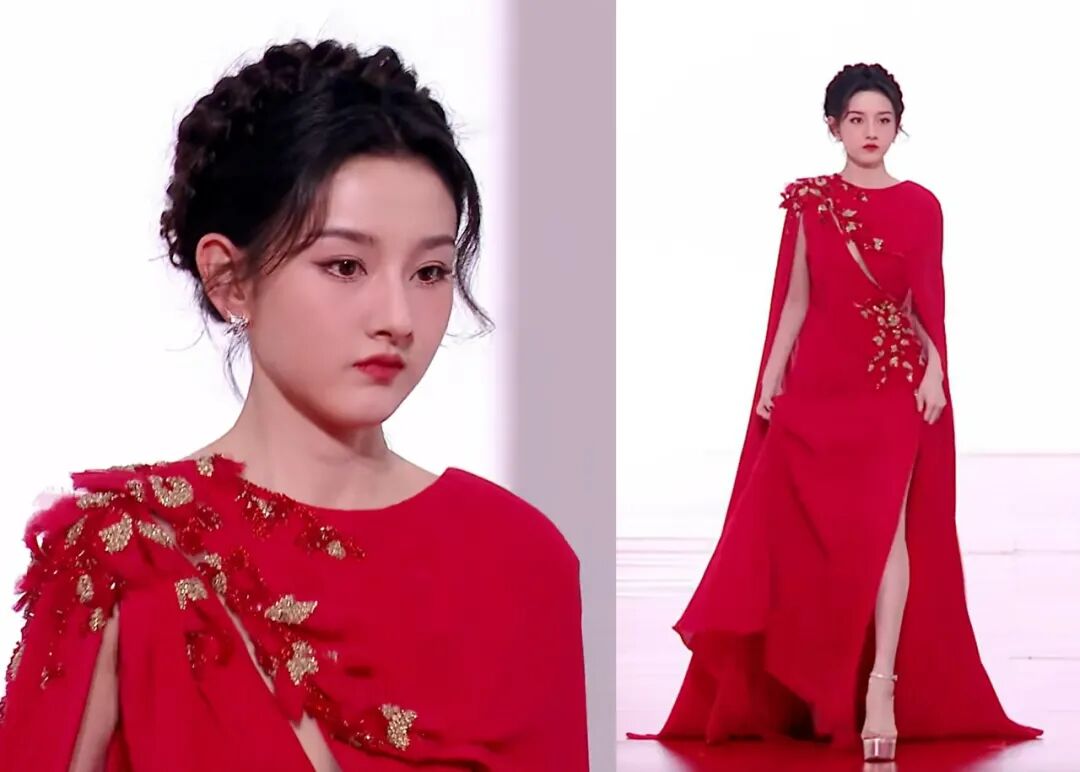 那边李嘉琦像偷穿了妹妹衣服的姐姐,这边宋祖儿则像借了四十来岁央视主持人衣服的妹妹,这条缀有金色亮片的红色长裙,对她而言过于成熟了,不如另一套银色长裙适合她。