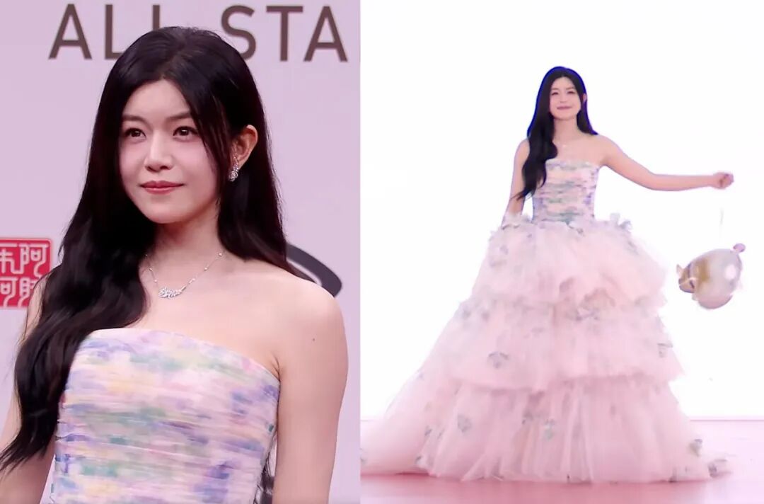 陈妍希穿了一条体积很大的粉色蓬蓬裙,她身上那种甜美的感觉仿佛从未变过。想想她也是挺扛老的,无论年轻时还是现在42岁,都没有明显的变化。