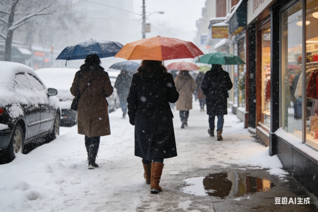 斑马线、地铁口、停车场坡道,这些被踩实成冰的“高危区域”,能绕就绕。记住:雪天走路没有捷径,安全就是最近的路。俗话说:宁踩新雪,不走冰面。宁绕十步远,不走一步险。
