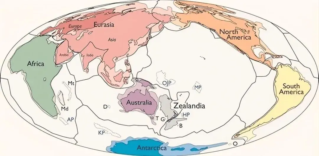 如果把时间往回拨到一亿多年前,泽兰蒂亚其实并不孤单,它和澳大利亚、南极洲等都连在一起,属于古老的冈瓦纳大陆。