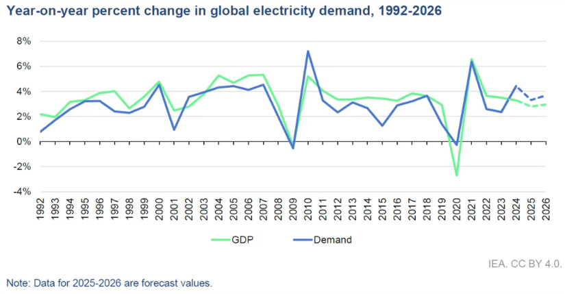 图表来源:IEA《全球电力市场半年报:2025H1》