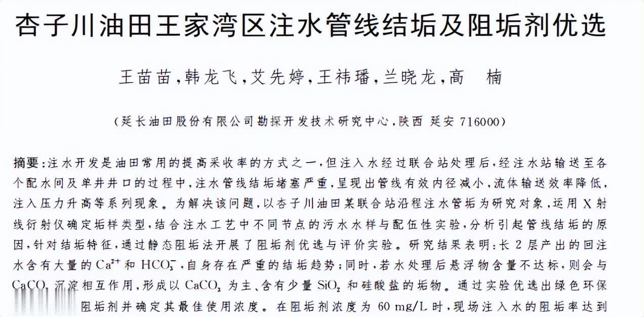 [1]王苗苗,韩龙飞,艾先婷,等.杏子川油田王家湾区注水管线结垢及阻垢剂优选[J].非常规油气,2024,11(06):100-107.
