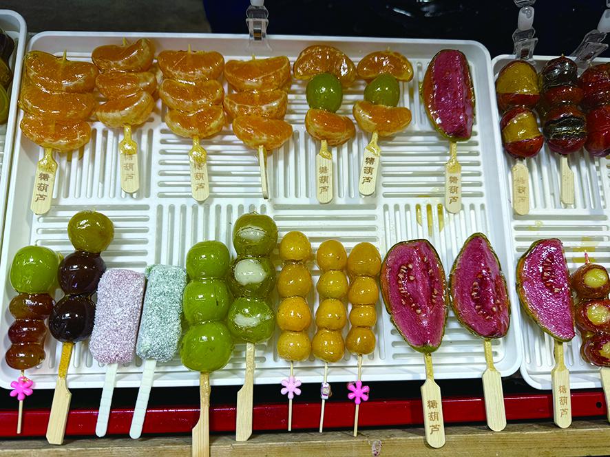 更具惊喜的是,商家还推出了多款“脑洞大开”的口味,刷新了人们对糖葫芦的认知。晶莹的葡萄串成的糖葫芦,咬开后汁水迸发,甜中带酸;裹着糖衣的辣条糖葫芦,咸辣与甜脆碰撞出奇妙火花,吸引了不少勇于尝试的年轻人;就连榴莲也被做成了糖葫芦,绵密的榴莲果肉搭配脆甜糖壳,让榴莲爱好者直呼“过瘾”。市民李瑗笑着说:“以前只吃山楂糖葫芦,现在居然有这么多花样,我每样都买了一串,既能解馋,拍照发朋友圈也特别有新意。”