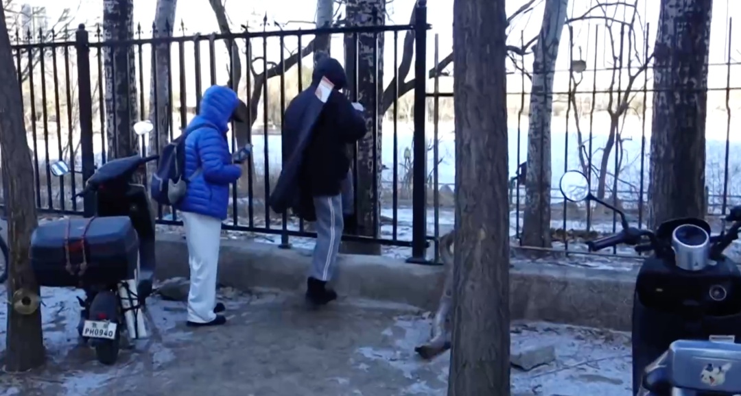 记者随机采访了一名游人,他表示,虽然公园大喇叭不断提醒“不要上冰”,但“说是说,做是做”,“前些日子还掉下一个人”。