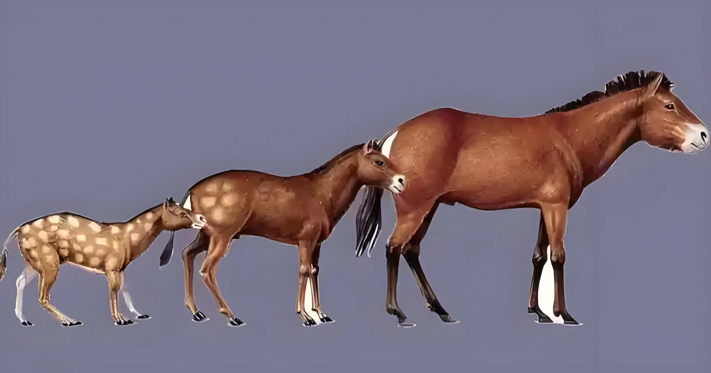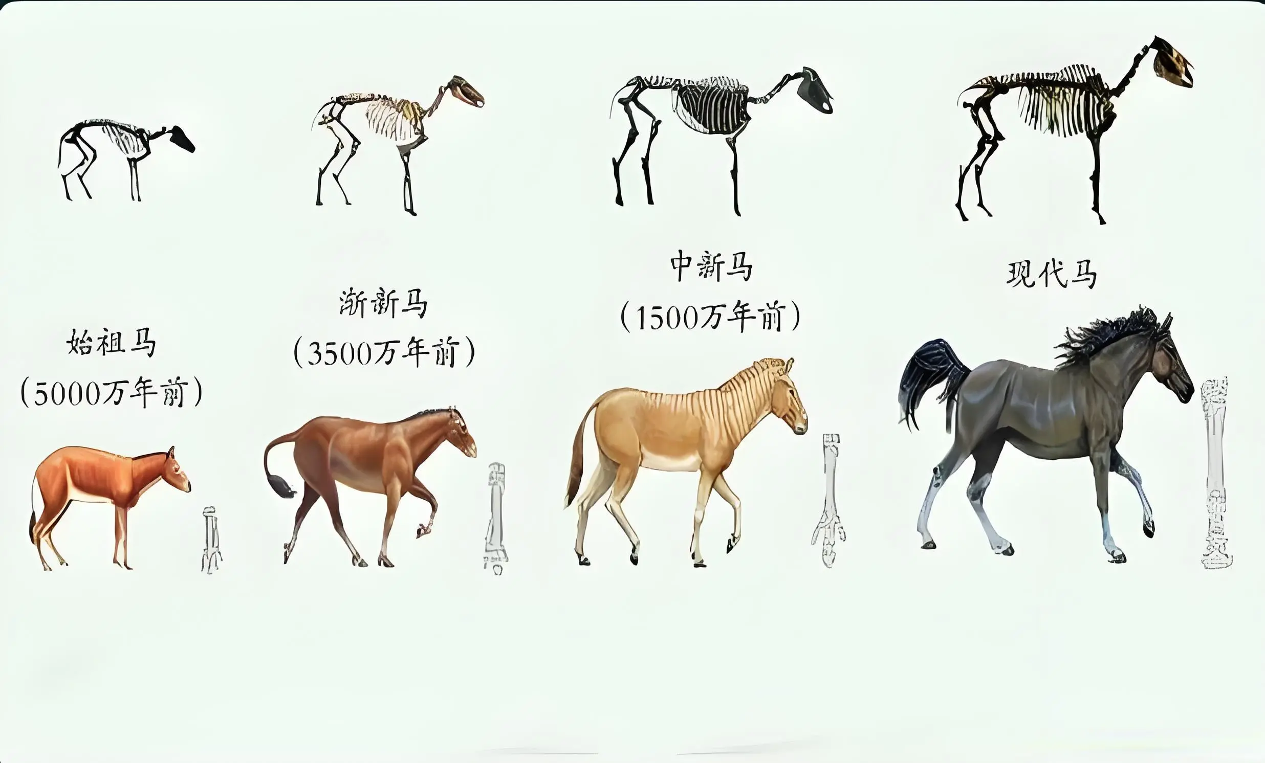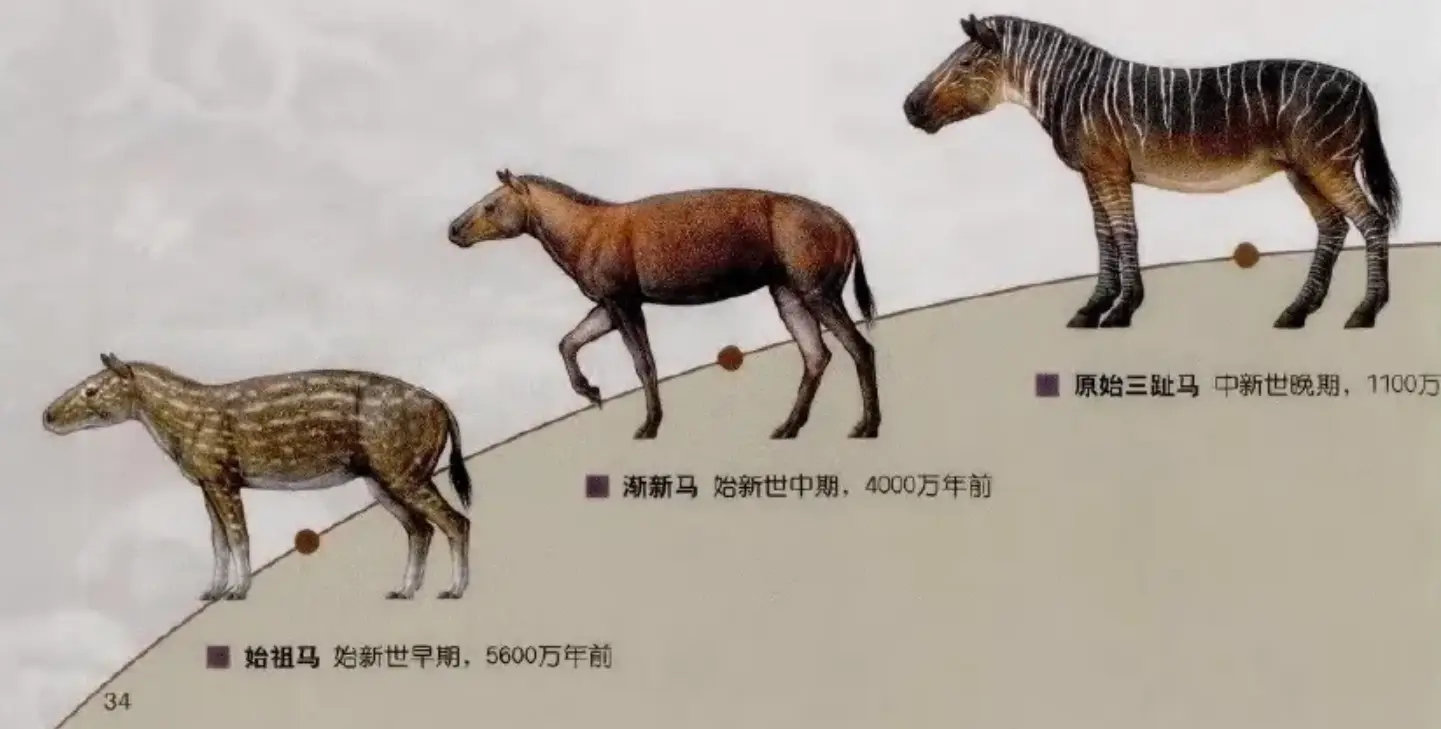 想象一下:5600万年前,一种狐狸大小、前脚四趾后脚三趾的小动物——始祖马,正在北美大陆的丛林里溜达。它的后代一路开枝散叶,扩散到欧亚、非洲、南美,演化出高头大马。