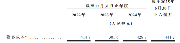 难以忽视的是,报告期内公司的获客成本整体呈走高态势,分别为414.8元、301.6元、428.7元、441.2元。2024年以来获客成本走高主要归因于在特定电商平台及社交媒体上的推广活动的投资回报率下降,公司对该等活动进行削减,导致以优惠价格购买体验式营销产品的付费用户数量减少。