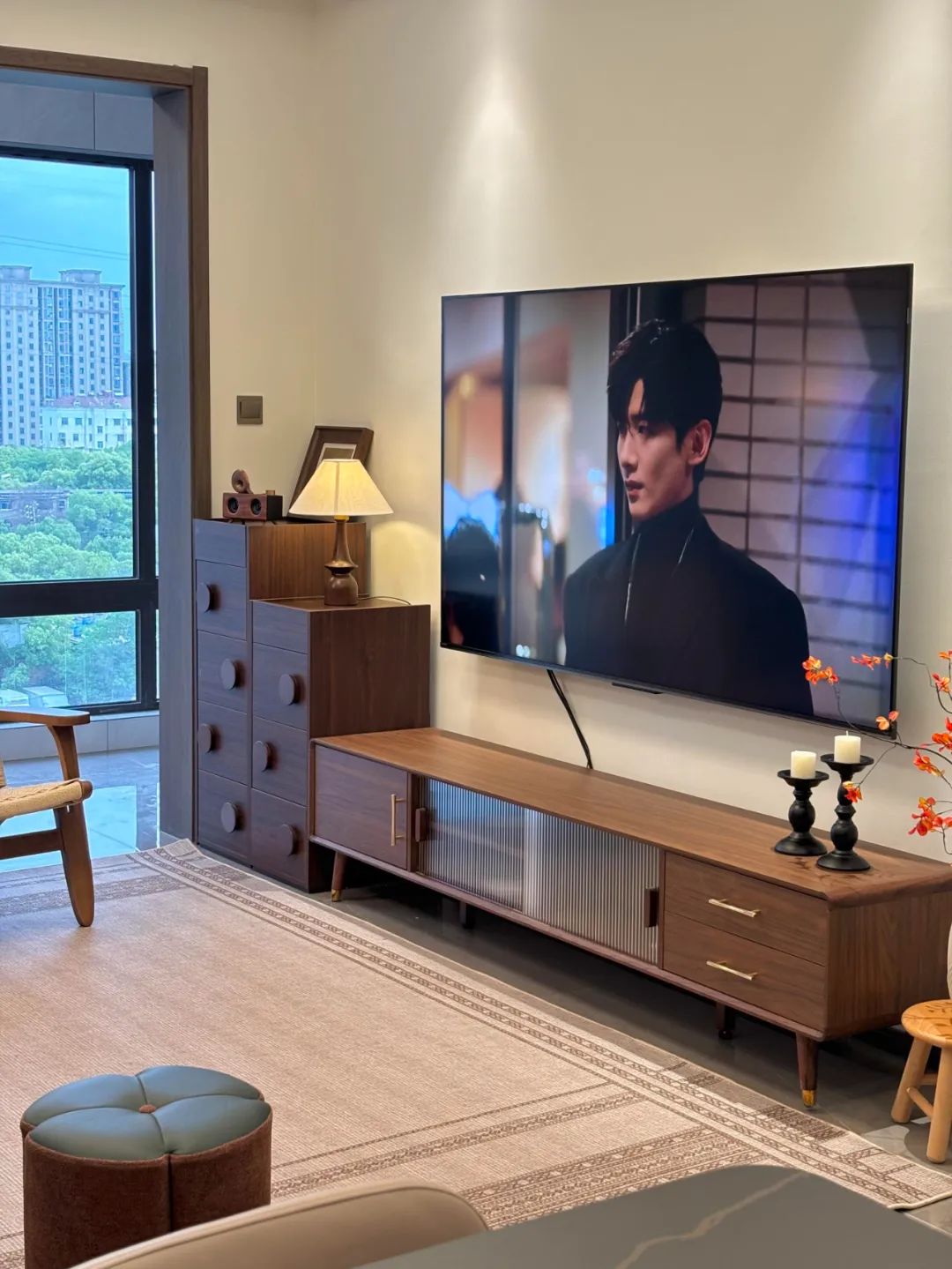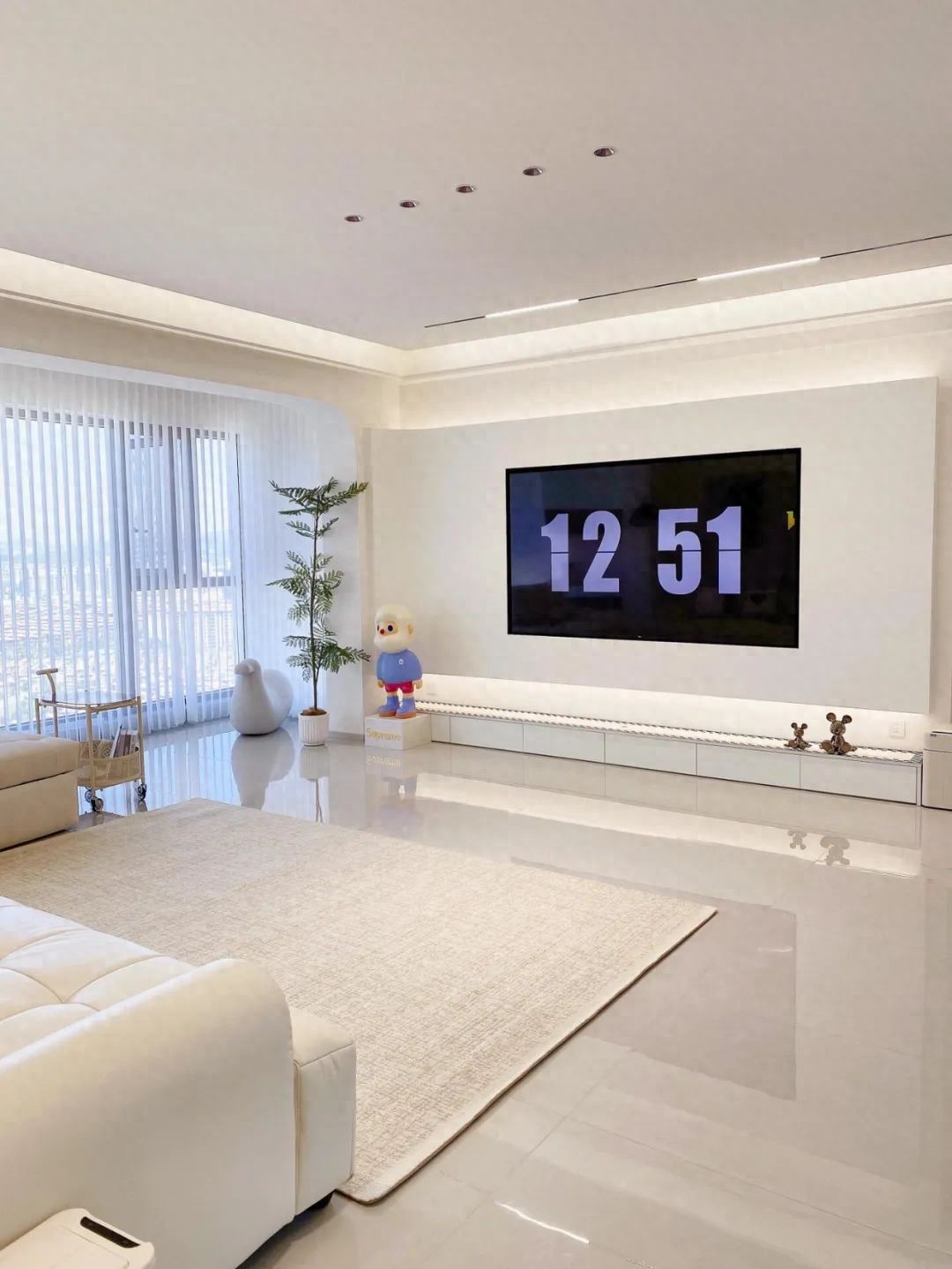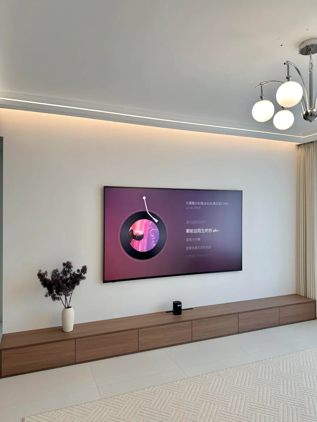 住久了真是越住越爱,这搭配简直是懒人福音。墙面一直干干净净的,没那些复杂造型积灰,平时基本不用擦,用个鸡毛掸子扫几下就行了,而且花钱少,比起那些雕花、石材拼接、岩板、木格栅的背景墙,能省下一大笔,用个十年八年都不过时,越看越顺眼。