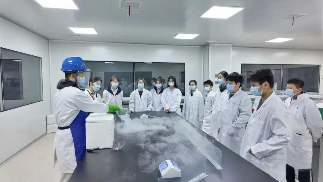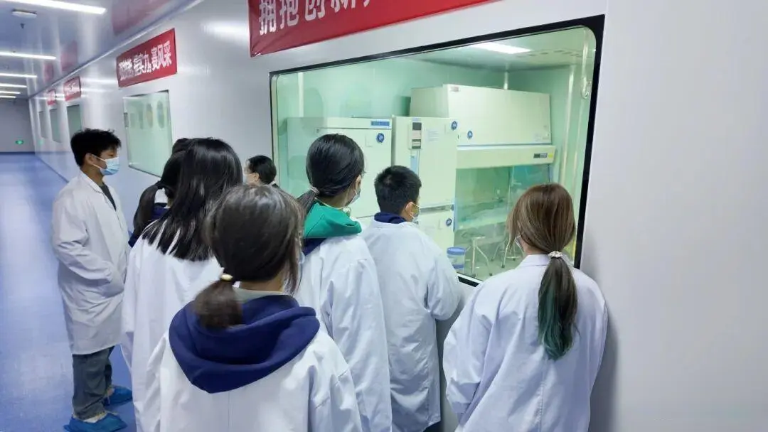 在临床级的湖南细胞制备中心,干细胞制备与冻存的全流程揭开神秘面纱。同学们亲眼见证着细胞科技如何从实验室走向临床应用,连接着科学与健康的未来。