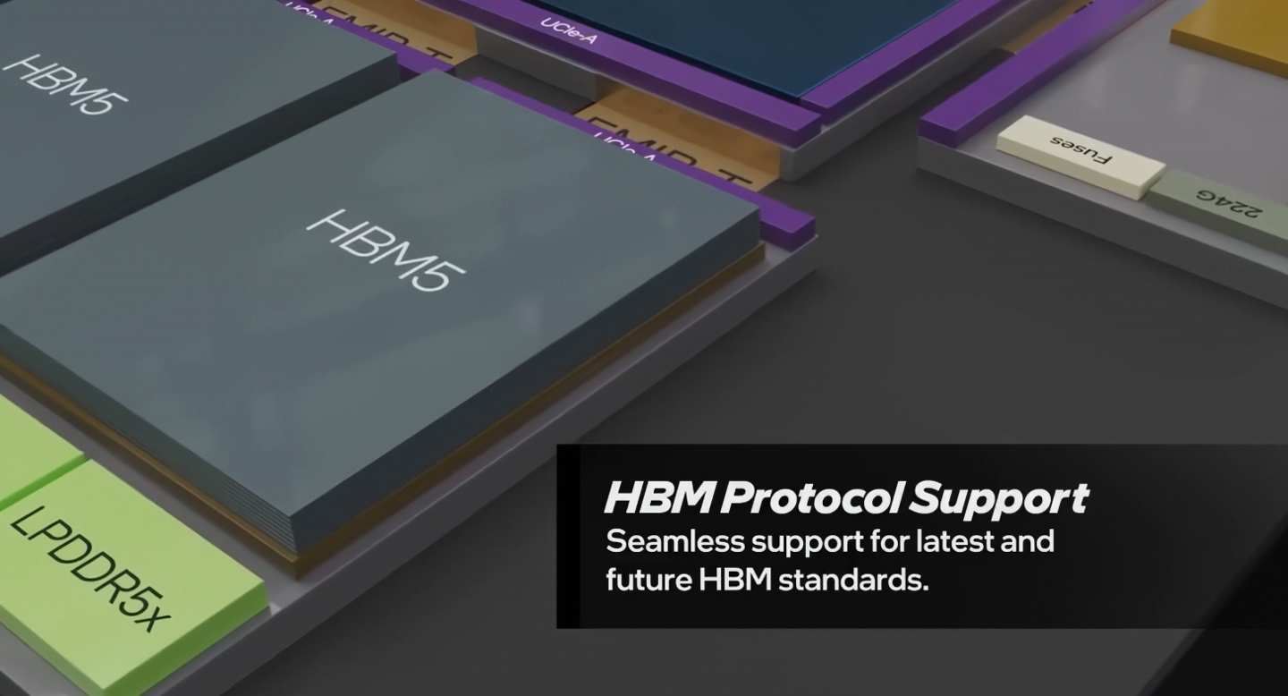 在存储方面,该方案展现了极高的兼容性,支持 HBM3、HBM4 乃至未来的 HBM5 标准。顶层芯片设计可容纳多达 24 个 HBM 位点,或集成 48 个 LPDDR5x 控制器,这种极高的内存密度将为处理大规模 AI 模型和数据中心工作负载提供关键支撑。