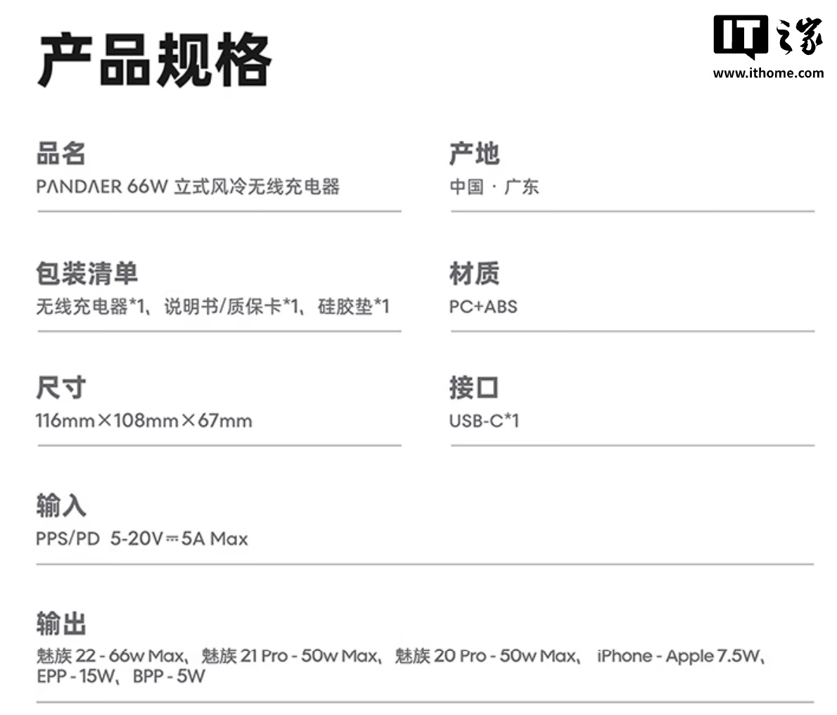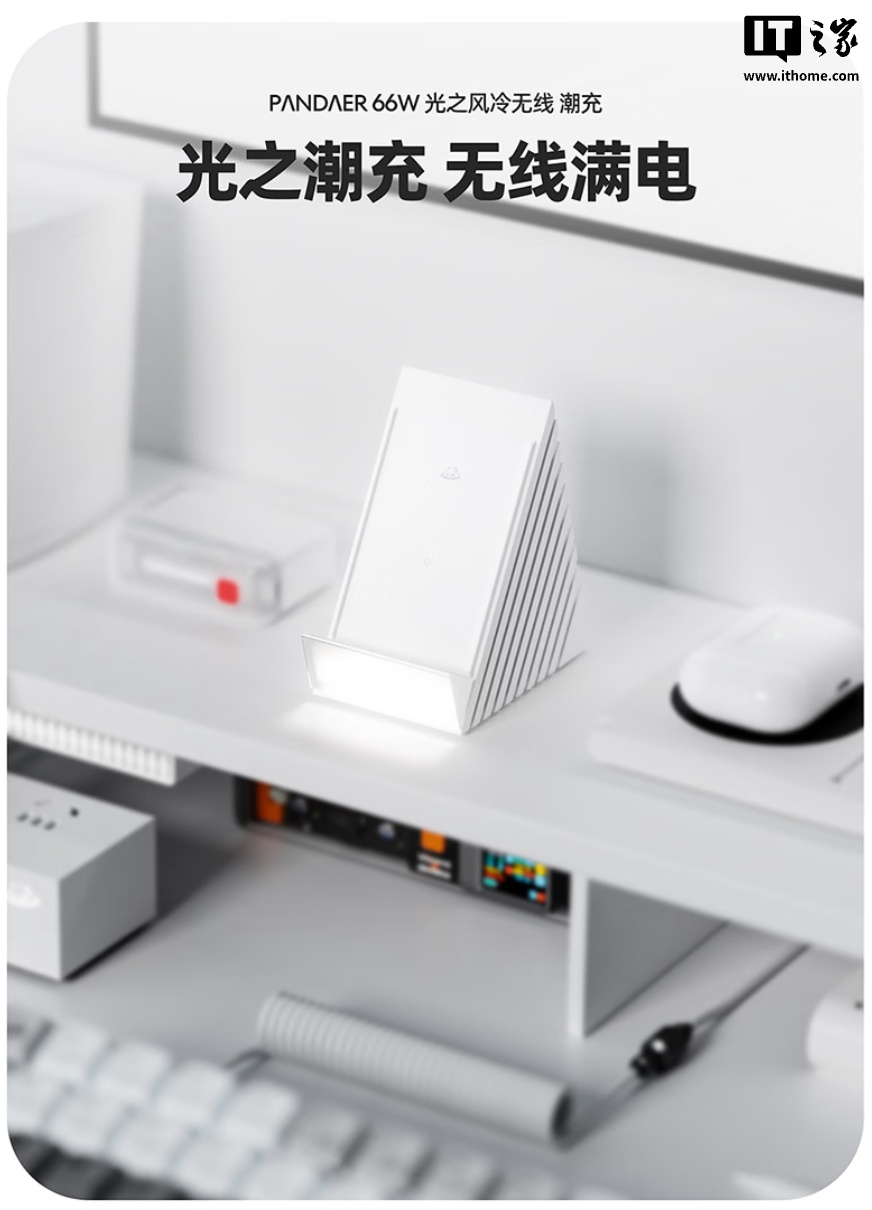 IT之家 12 月 24 日消息,魅族旗下 PANDAER 66W 光之风冷无线充电器现已在京东上架,该机主打 3D 立体风冷散热、横竖自由放置,定价 349 元,首发价 347 元。