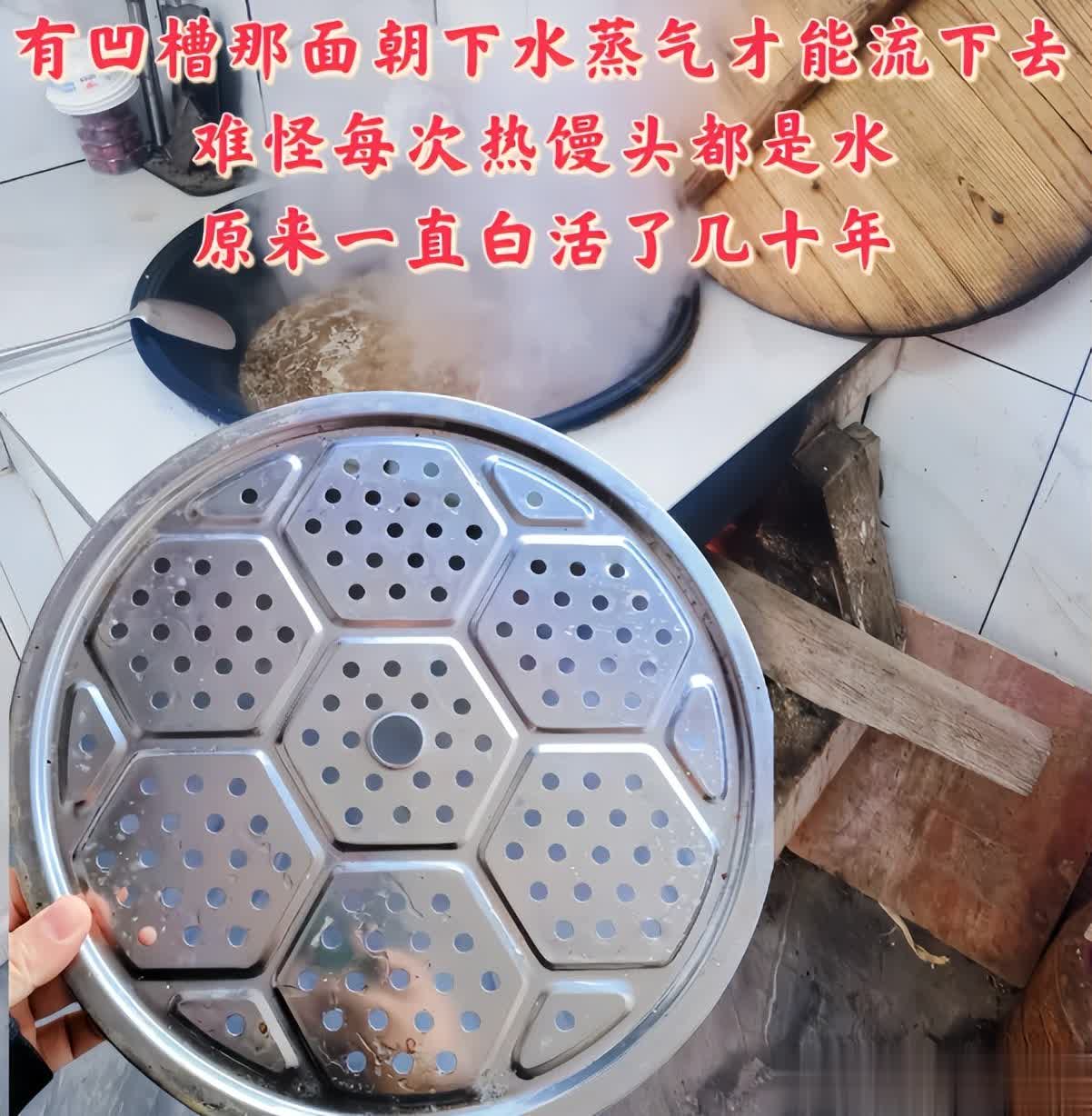 大家用笼屉的时候,都喜欢把笼屉凹槽处朝上,面食放在上面,只要是一加热,凹槽处就会有积水,肯定会把面食弄湿啊!