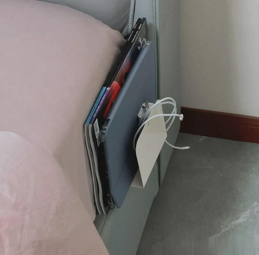 把它反过来,直接插在床和床垫之间,立马在床跟床垫之间得到一个小小的收纳空间。