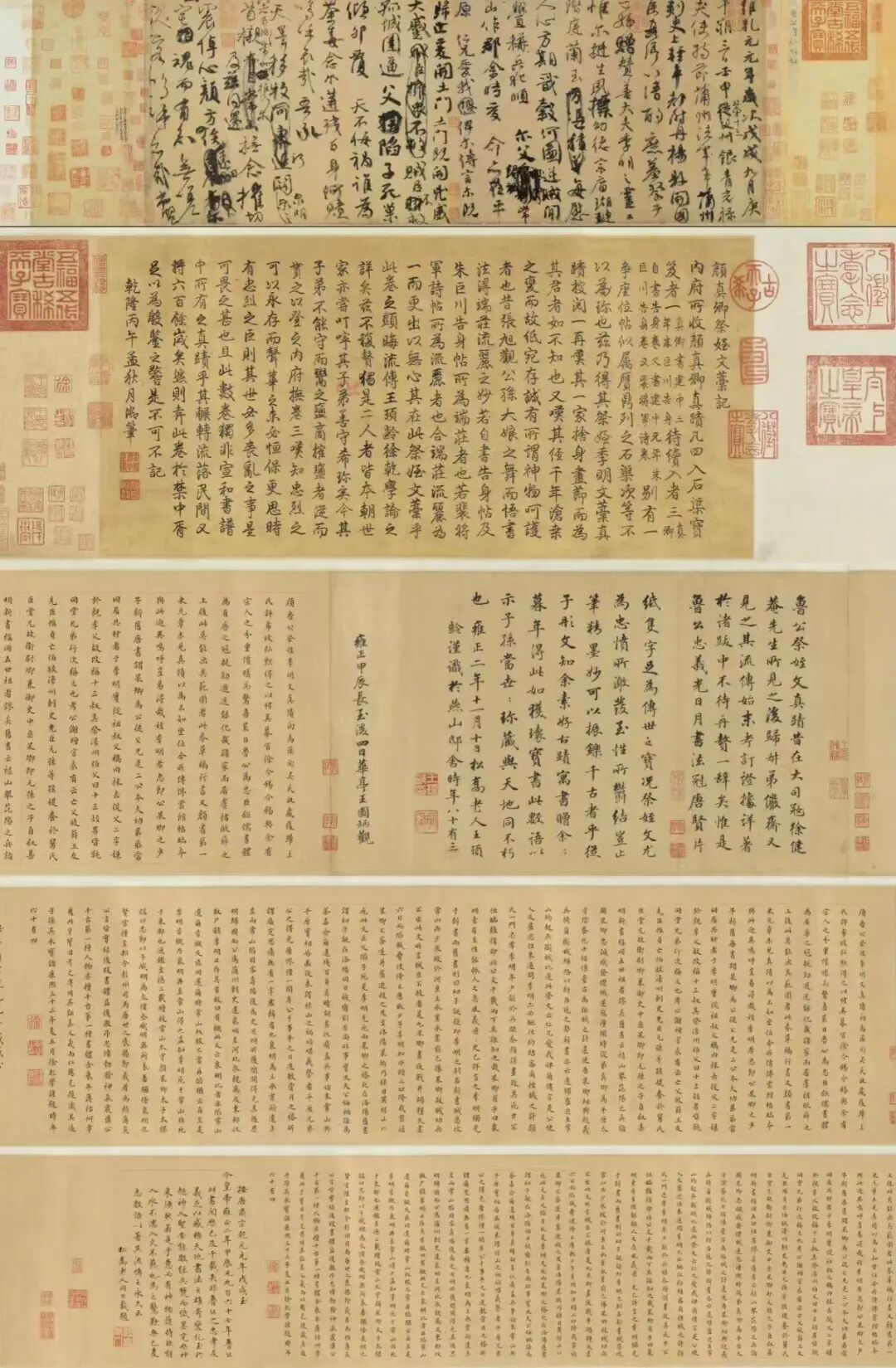 现存的《兰亭集序》是否为王羲之亲笔所写众说纷纭,但《祭侄文稿》上保存的9则题跋和数十方鉴藏印不仅有力佐证了其真迹身份,也完整记录了这件国宝自唐至清的流传轨迹。