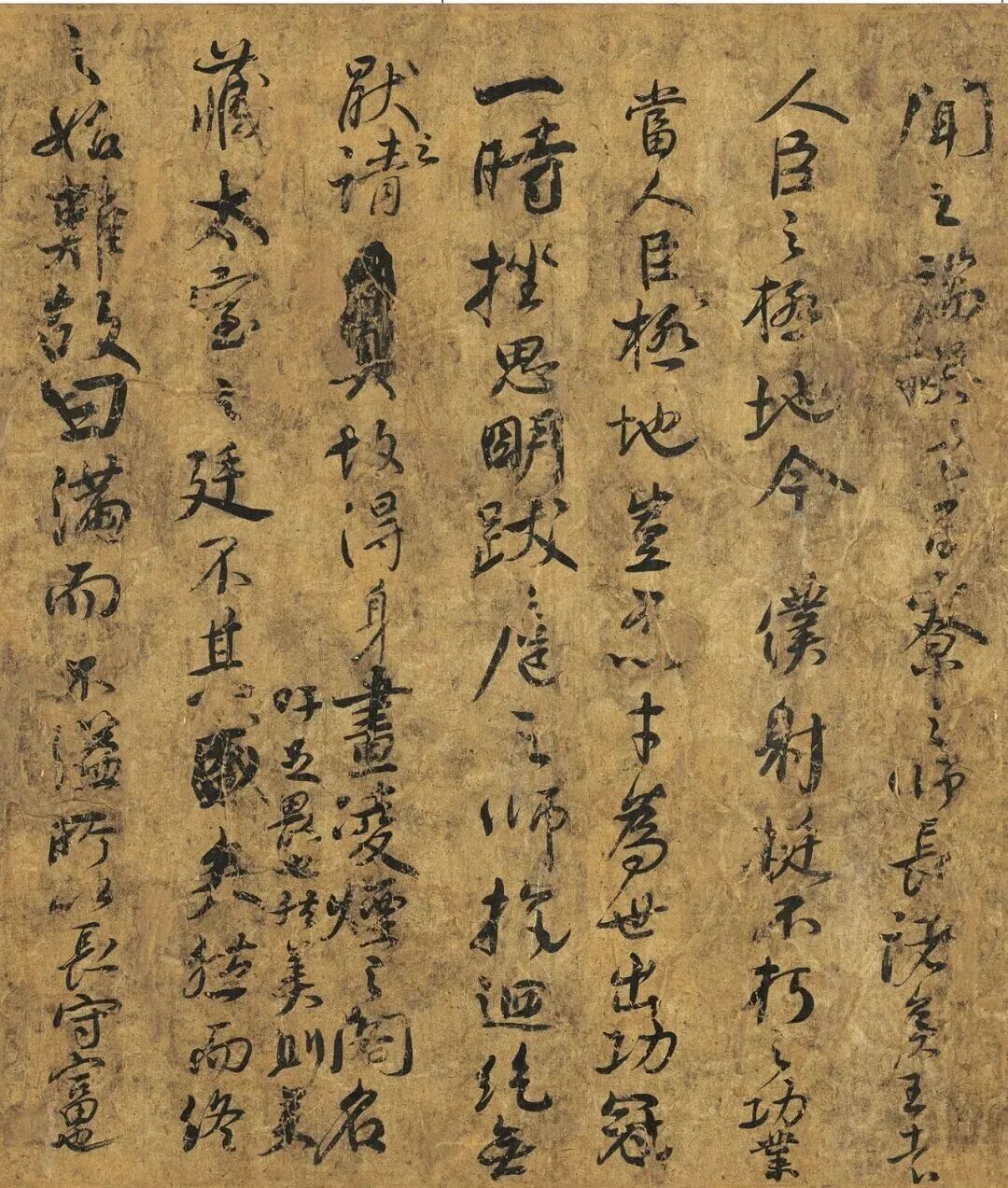 颜真卿赞颂裴将军英勇豪迈,亦以粗壮有力、气势磅礴的笔触呼应主题,将裴将军的猛将气概视觉化。