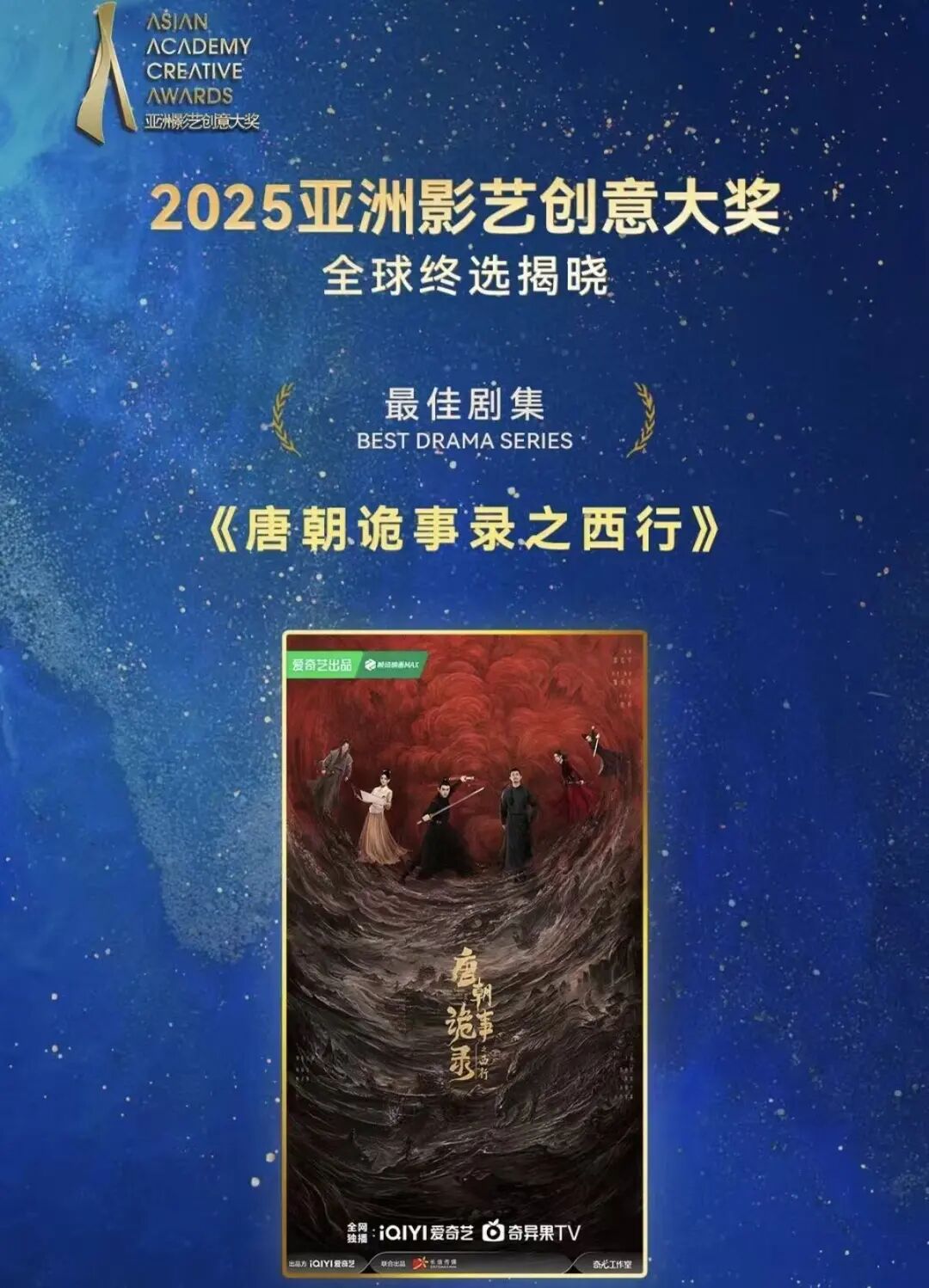 前阵子,《唐朝诡事录》获得2025年AACA亚洲影艺创意大奖最佳剧集。