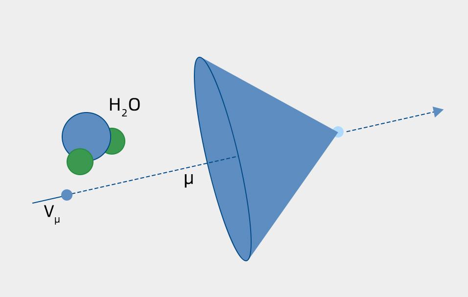 中微子与水分子相互作用产生的带电粒子在介质中以比光更快的速度运动时会发光。(图:KM3NeT合作组)