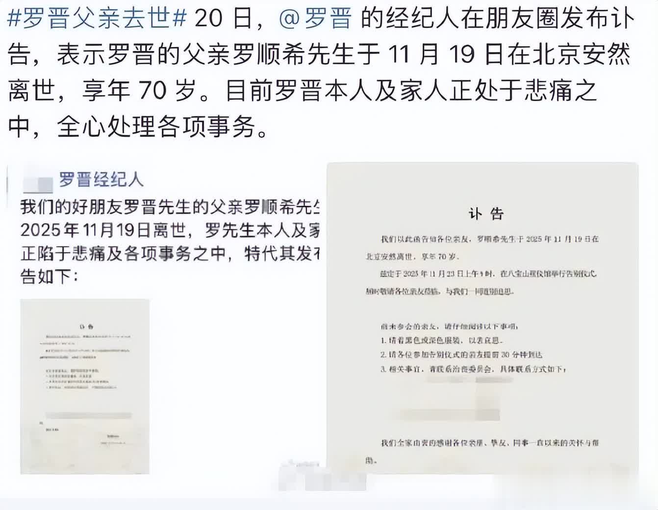 可是,正当婚变的消息愈演愈烈的时候,罗晋父亲的去世,却直接让这件事,来了一个大转折。