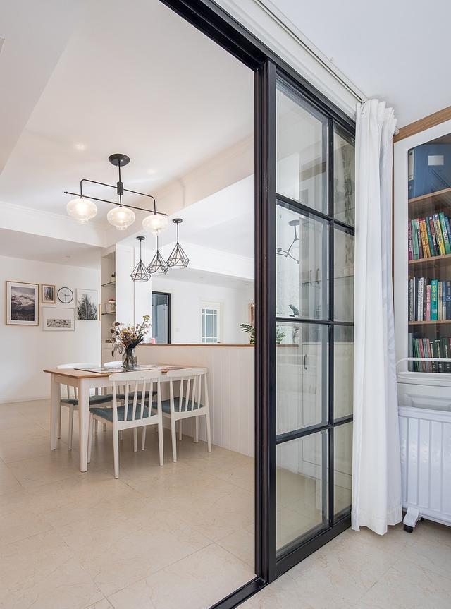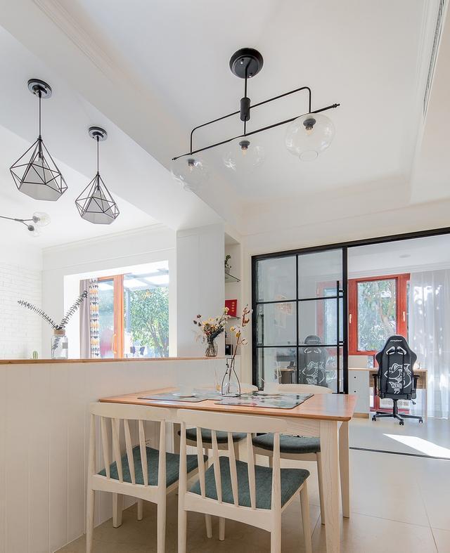 原本的客厅多加了半高墙作为隔断,刚好沙发也有了靠山,明确的区域划分,另一边作为餐厅。
