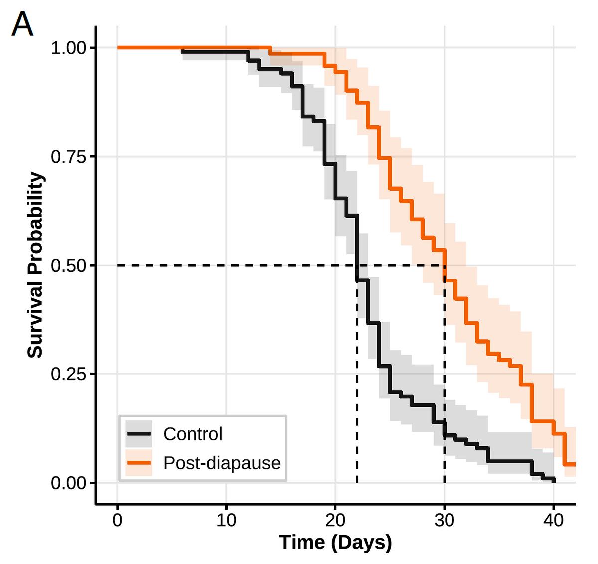 幼虫期经历过滞育的成蜂其寿命比未滞育的同种个体更长(图片来源:参考文献[1])