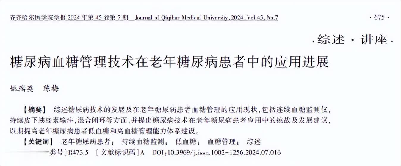 [1]姚瑞英.糖尿病血糖管理技术在老年糖尿病患者中的应用进展, 齐齐哈尔医学院学报, 2024-04-15