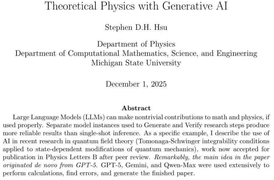 这可能是第一篇由AI提供核心理论突破思路的理论物理学论文。