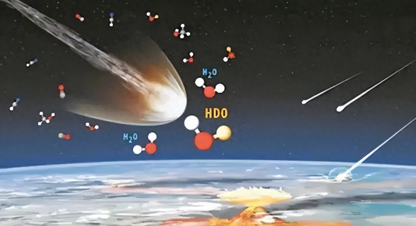 科学追踪水的来源,靠的是一个并不直观却异常好用的线索——氘氢比。氢是宇宙里最轻的元素,它的“大体重”同位素叫氘。由氘参与形成的水分子被称为“重水”,常以 HDO 的形式被识别。温度、密度、化学反应路径不同,都会让水在形成时“掺”进不一样比例的氘,就像在一锅清汤里滴入不同颜色的墨水,最终呈现各自稳定的色调。于是,氘氢比就成了一枚分子层面的“身份证”——地球海水有自己的标准数值,彗星、小行星、星际云团的氘氢比也各有特征。把它们一一比对,就可能追溯出海洋的身世。