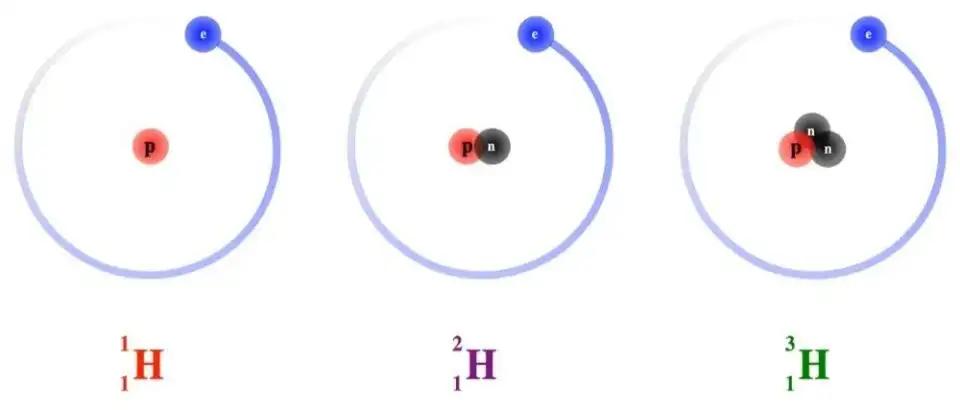 氢元素的三种同位素,从左至右依次为氕、氘、氚,其中的氕在很多场合下沿用“氢”这个叫法,本文中的氢皆为氕,即氢最常见的同位素