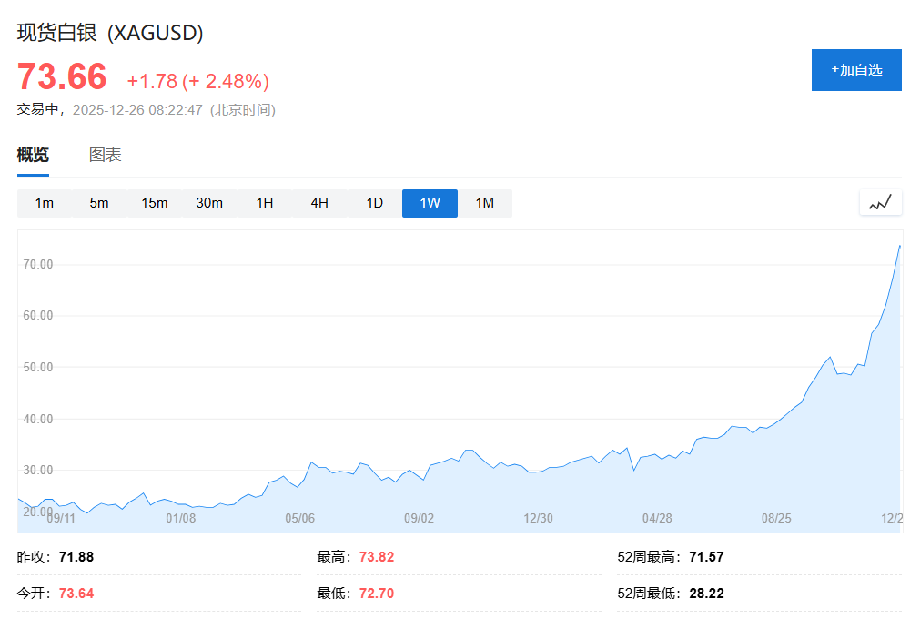 近期,现货白银已突破70美元关口,并且继续在频创新高。