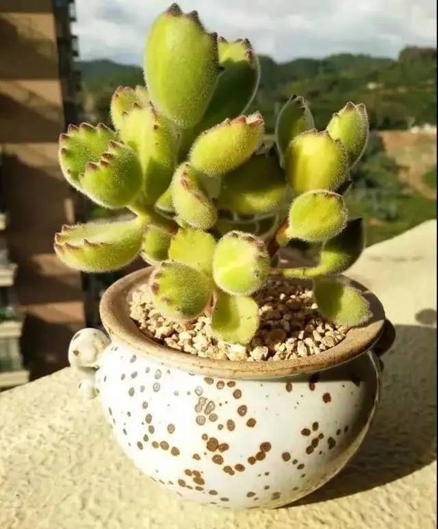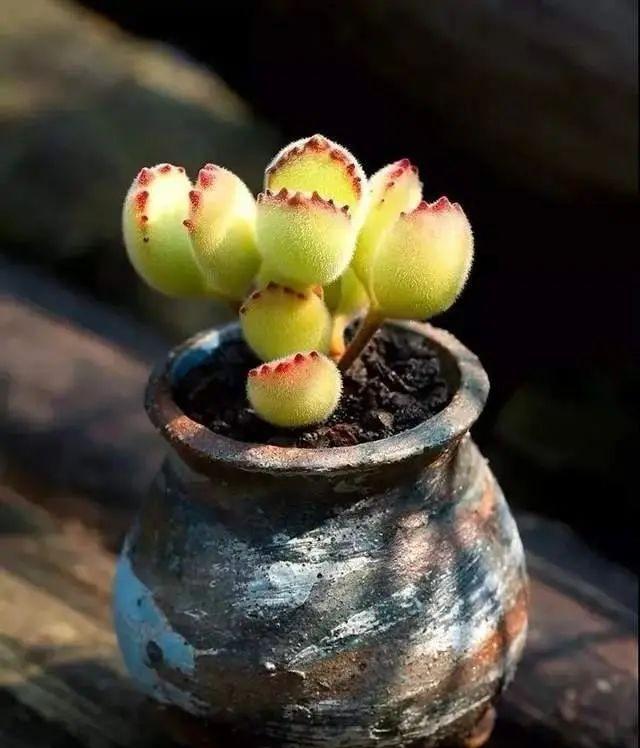 养护:在冬季养护熊童子,需要给它提供一个干燥的环境,温暖方面也需要注意,尽量维持在10摄氏度以上,尽量减少对它的浇水,以免导致叶子受损!