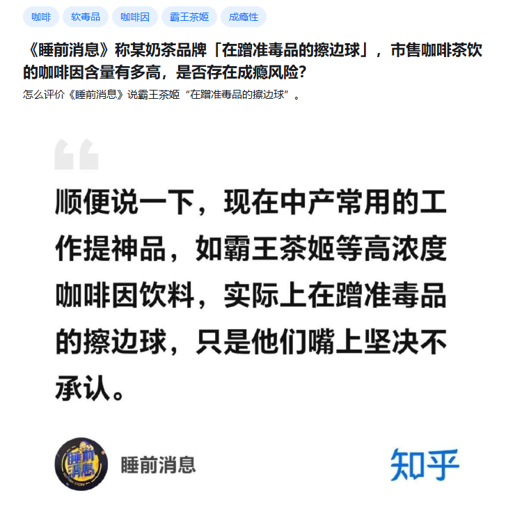 霸王茶姬被质疑咖啡因含量过高:实际在蹭准毒品的擦边球