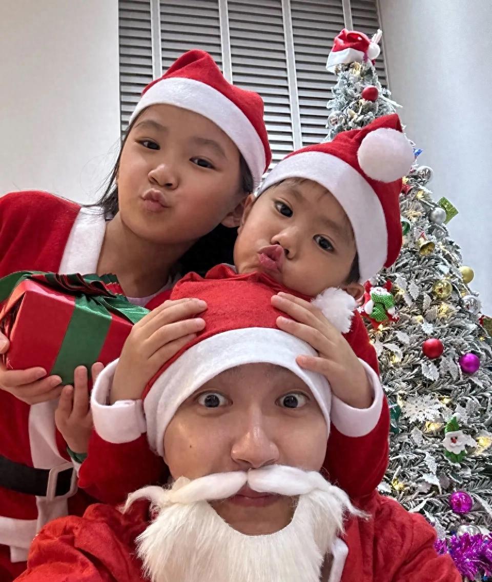 江宏杰晒和孩子们一起过圣诞节照片 按抚养协议他们还是有妈妈的