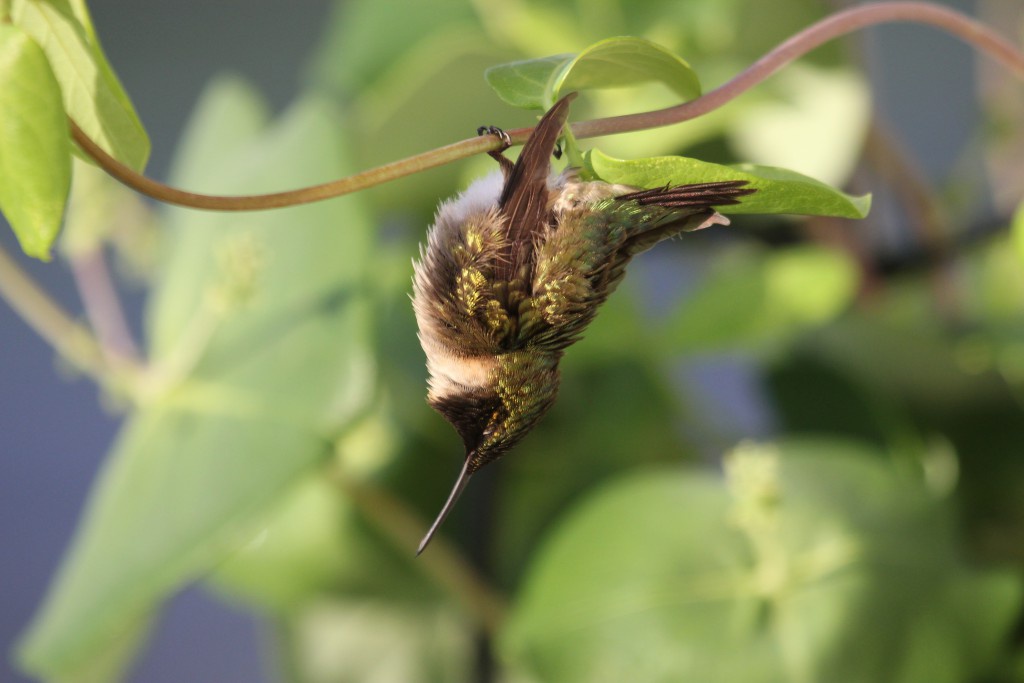 更可爱的是,蜂鸟在这种迟钝状态下是倒挂着的!