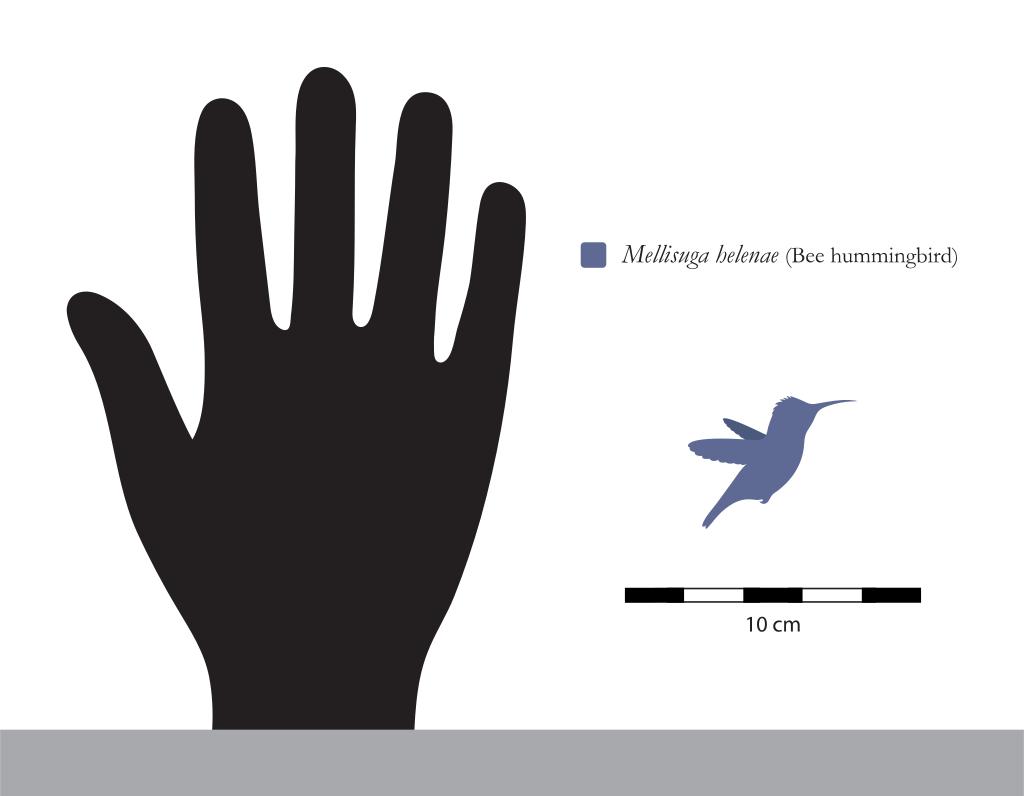 图注:吸蜜蜂鸟和人类手掌的大小对比