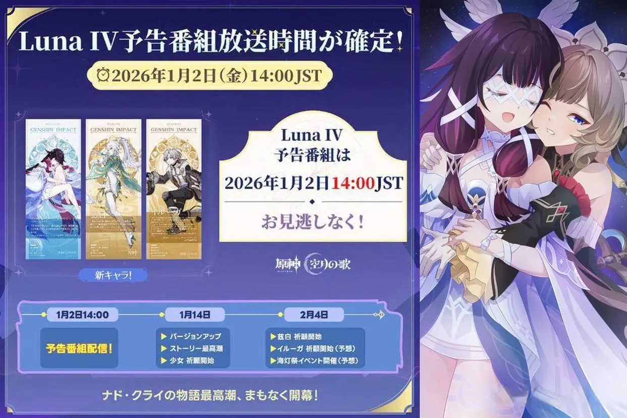 另外,原神6.3版本的前瞻直播预告已经在日服官宣了,通过预告也可以得知卡池的一些信息,那就是哥伦比娅在上半,下半是兹白+叶洛亚,结合之前的消息来看,应该就是那维莱特上半,下半伊涅芙复刻了。
