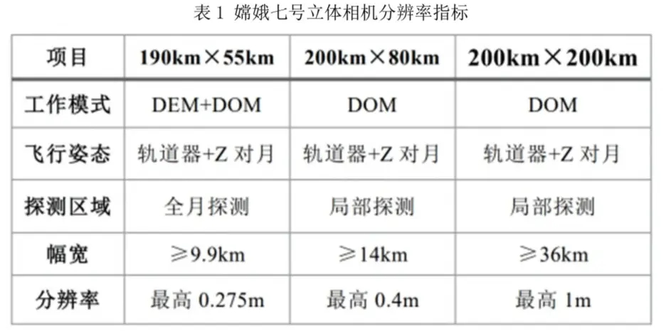 15公里月面分辨率优于0.075米,成像幅宽大于0.9公里。